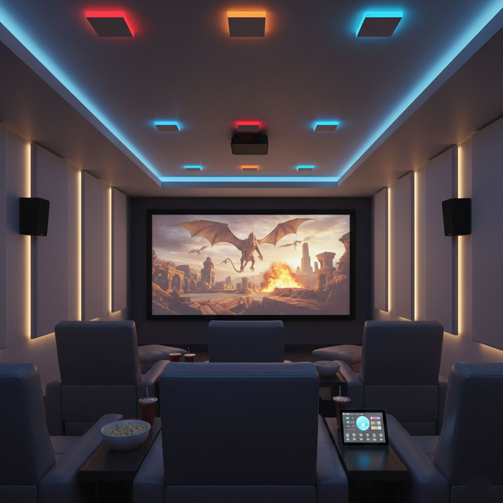 Smart lighting doesn’t just serve a functional purpose—it can be a key part of your home cinema’s design aesthetic.